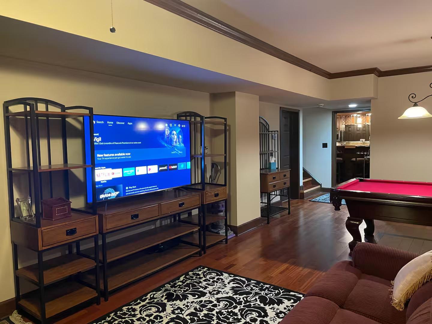 A really nice, fully-finished basement in an upscale, gated neighborhood with all the bells and whistles and comforts of home. The entire basement is yours. Separate entrance with code-lock entry, large screen TV, high speed internet, a pool table and a fully stocked bar/kitchen plus in-unit laundry. The perfect place for an extended stay situation!